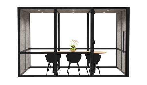 Mit der Größe „L“ bietet diese Meetingbox ausreichend Platz für mehrere Personen – typischerweise für vier bis sechs Teilnehmer. Damit ist sie eine ideale Alternative zu klassischen Besprechungsräumen, die häufig fest gebunden und weniger flexibel sind.